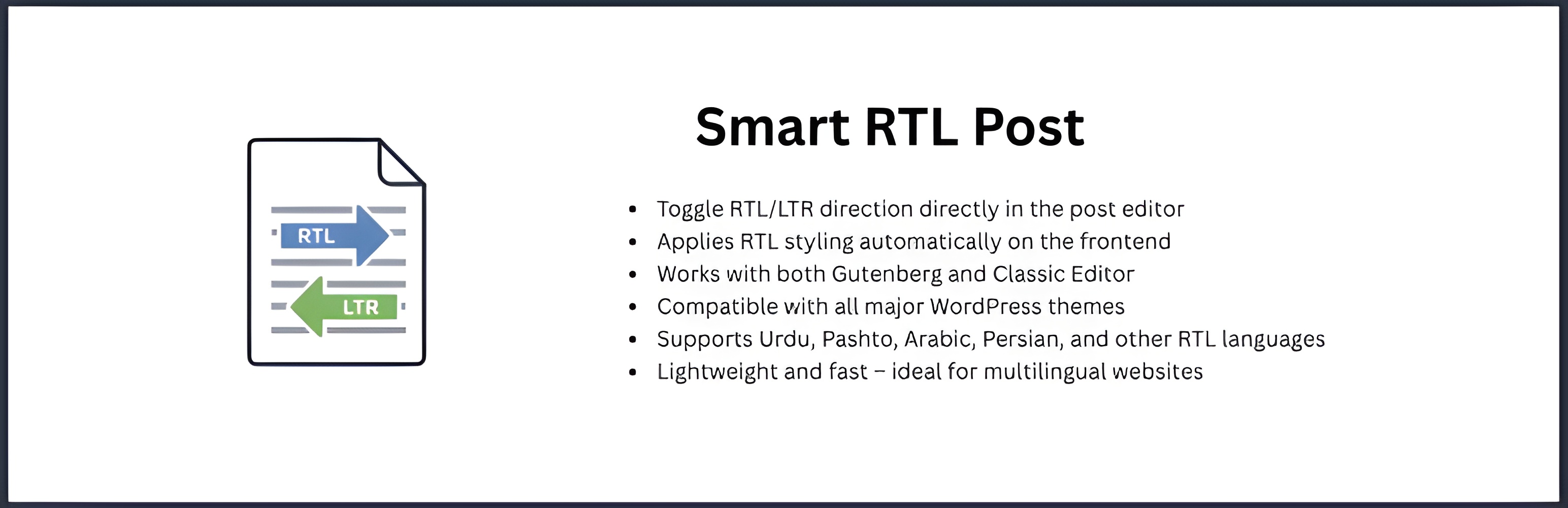 Smart RTL Post changes your post layout direction to right-to-left for languages like Pashto, Arabic, and Urdu with just one click.